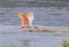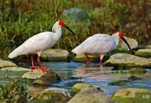 朱鹮是鹈形目鹮科朱鹮属的鸟类动物。其雄鸟通体白色,羽干及两翅与尾等均沾染粉红色;颈项上有很多长矛状羽毛,形成羽冠,耸立时非常夺目;嘴长而向下曲,呈黑色,先端朱红,脚的裸露部分亦呈亮红色。雌鸟羽色略同,…全部>>