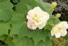 木芙蓉,锦葵科木槿属落叶灌木或小乔木。小枝上有细绒毛;叶片为卵状心形,托叶为披针形,常早落;花单生,花萼为钟形,花冠初为白色或淡红色,后逐渐变为深红色;果实为扁球形,有淡黄色的毛附着。花期8到10月。…全部>>