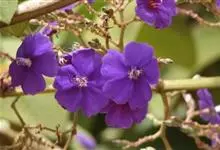 巴西野牡丹,野牡丹科蒂牡花属常绿灌木,高100厘米。枝条红褐色,四棱柱形被茸毛和糙伏毛;叶对生长椭圆形或披针形;总状花序顶生,花冠紫蓝色,花瓣倒卵形;萌果球形,密被毛;花期、果期全年。在巴西,…全部>>