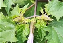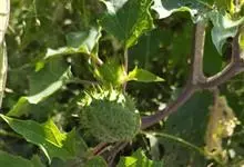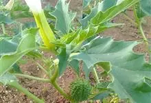 曼陀罗,茄科曼陀罗属一年生大型草本植物,全株光滑。有臭气;叶呈广卯形,边缘具不规则波状浅齿裂;花单生于枝杖间或叶腋,直立,有短梗;花萼是筒状裂片三角形,颜色为白色或淡紫色;果实为蒴果卵状,…全部>>