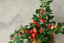五色椒又名朝天椒,五彩辣椒,为辣椒 变种,味涩。属茄科多年生半木质性植物,常作一年生栽培;江苏沭阳一带有不少花农种植,其株高30厘米—60厘米,分枝多、茎直立,单叶互生;花白色,开花期5月初—7月…全部>>