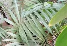 布迪椰子 Becc.)是棕榈科,布迪椰属常绿观赏树种,单干型,高可达8米,老叶基残存包裹于树干,粗壮、坚硬。羽状叶,弯曲如弓形,有羽片对,厚革质,叶端尖锐,小叶片长灰绿色,叶柄具刺;雌雄同株;花序腋生,…全部>>