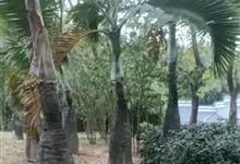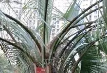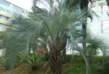 布迪椰子 Becc.)是棕榈科,布迪椰属常绿观赏树种,单干型,高可达8米,老叶基残存包裹于树干,粗壮、坚硬。羽状叶,弯曲如弓形,有羽片对,厚革质,叶端尖锐,小叶片长灰绿色,叶柄具刺;雌雄同株;花序腋生,…全部>>