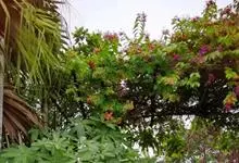 千果榄仁是使君子科诃子属植物,常绿乔木,高可达35米,小枝圆柱状,叶对生,厚纸质;叶片长椭圆形,侧脉两面明显,叶柄较粗,大型圆锥花序,顶生或腋生,花极小而数,两性,红色,小苞片三角形,宿存;萼筒杯状…全部>>