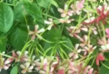 使君子 Jongkind)是使君子科、使君子属攀援灌木,叶对生,椭圆形,两面均被灰白色柔毛。穗状花序,倒挂下垂。花期夏秋。果有五棱,熟时黑色,种子白色。分布于印度、缅甸、菲律宾和中国。喜温润,深根性,…全部>>