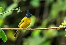 黑冠黄鹎:体长18-21厘米,是一种中等体型偏黄色鹎。整个头、颈、颏、喉黑色,头顶有显著直立的羽冠,黑色,上体褐橄榄黄绿色,下体橄榄黄色。虹膜偏红;嘴及脚黑色。…全部>>