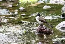 黑冠黄鹎:体长18-21厘米,是一种中等体型偏黄色鹎。整个头、颈、颏、喉黑色,头顶有显著直立的羽冠,黑色,上体褐橄榄黄绿色,下体橄榄黄色。虹膜偏红;嘴及脚黑色。…全部>>