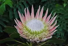 帝王花,山龙眼科帝王花属多年生常绿灌木植;茎干粗壮,叶色翠绿光亮;花朵呈圆球状;其苞片有的完全打开,使花朵呈扁平状;有的则呈半闭合状态,使花朵相对修长,…全部>>