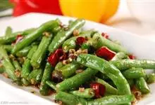 干煸豆角是用四季豆制作作为主要食材,以酱油、香油、味精、醋作为调料制作而成的一道家常菜。口味咸香辣,色泽嫩绿,口感脆嫩,营养丰富。豆角中的纤维有利于降低人体内的胆固醇,…全部>>