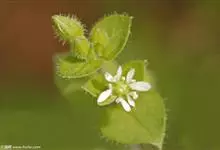 鹅肠菜 Scop.),是石竹科繁缕属的多年生草本植物;须根;茎上升,多分枝,上部被腺毛;叶片卵形或宽卵形,顶端急尖,基部稍心形,边缘具毛,上部叶常无柄或具短柄,疏生柔毛;顶生二歧聚伞花序;花瓣白色,…全部>>