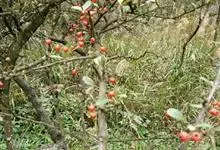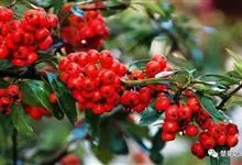 火棘 H. L. Li)是蔷薇科火棘属常绿灌木,老枝呈暗褐色;叶片呈倒卵形,边缘有钝锯齿,齿尖向内弯,两面皆无毛;叶柄短,无毛或嫩时有柔毛;花序是复伞房状,花瓣呈白色近圆形;果球近圆形,…全部>>