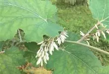 博落回 R. Br.)是罂粟科博落回属直立草本,高可达4米。茎光滑绿色;叶片宽卵形或近圆形,背面多白粉,常呈淡红色;大型圆锥花序多花,顶生和腋生,花芽棒状,萼片倒卵状长圆形;子房倒卵形至狭倒卵形,…全部>>