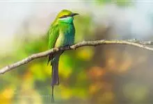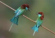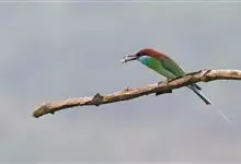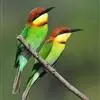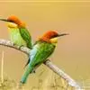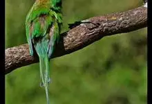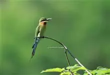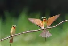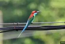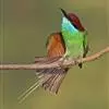 绿喉蜂虎是佛法僧目、蜂虎科的小型鸟类,共有9个亚种。身长22-25厘米,翼展29-30厘米,体重15-20克。喉绿色,额部、头顶至上背为锈红色,其余上体均为亮绿色。中央尾羽延长且端段狭细,…全部>>