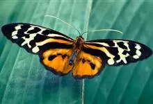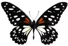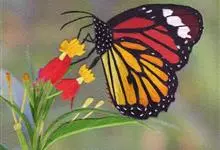 黑脉金斑蝶:翅阔8.6-12.4厘米。雄蝶较雌蝶为大。成年蝶颜色鲜艳,翅膀上有显眼的橙色及黑色斑纹,周围是宽阔的黑色边框,布有许多白色斑点。这种引人注目的着色是对捕食者的视觉警告,表示这个物种有毒;…全部>>