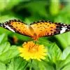 虎斑蝶,Danaus genutia ,是斑蝶属的一种,常见于湿地公园内。雄性虎斑蝶经常伏于吊裙草 上吸食汁液,以制造吸引异性的香气。虎斑蝶翅膀腹面鲜橙色,翅脉和翅边缘黑色,边缘上有两行小白点,…全部>>
