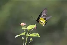 金裳凤蝶是凤蝶科、裳凤蝶属的动物。金裳凤蝶身体呈黑色,头、颈和胸侧有红毛,腹部有黑黄两色相间条纹,雄蝶前翅黑色,具黑天鹅绒光泽,各脉两侧灰白色,后翅金黄色,各室外缘有等腰三角形黑斑1枚,斑内侧有晕,…全部>>