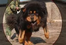 藏獒,是食肉目犬科犬属哺乳动物。藏獒毛色繁多,有黑背黄腹、纯黑、红棕、杏黄、纯白、狼青等色型。头部宽阔、巨大、强健;眼具表现力,中等大小,棕褐色为常见颜色;胸宽,腰长而宽;脚掌较大,有排毛,…全部>>