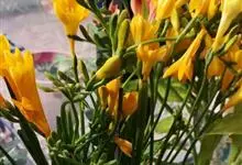 小苍兰,拉丁学名为鸢尾科香雪兰属,多年生球根花卉。叶子线形,质硬;早春开花,有黄、白、紫、红、粉红等色,穗状花序,花偏生一侧,筒中部以下狭细,裂片不等大,有芳香味。全部>>