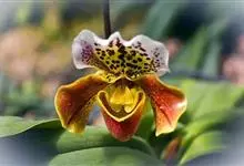 湿唇兰 Pfitz.):茎粗壮,长被宿存的叶鞘所包,上部具3-5枚叶。叶长圆形或倒卵状长圆形。花序1-6个,长达35厘米;疏生5-8朵花;花大,稍肉质,萼片和花瓣黄色带暗紫色斑点;萼片近相似,…全部>>
