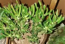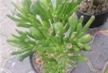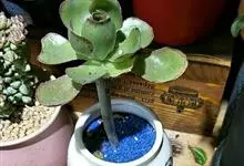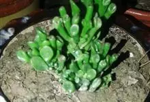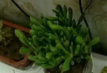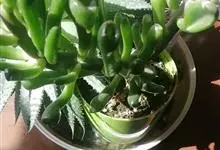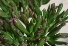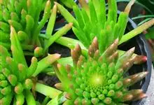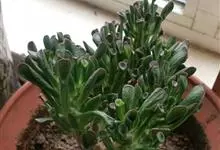 筒叶花月,是景天科青锁龙属的多年生草本植物。植株多分株,灌木状,茎较粗壮,圆柱形,表皮灰褐色;叶片肉质,互生,呈圆筒状,簇生于茎或分枝顶端,叶端呈斜截形,截面为椭圆形;花呈星状,淡白色;花期秋季。…全部>>