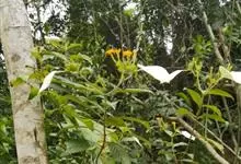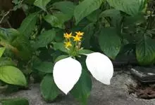 白纸扇是茜草科玉叶金花属,藤状攀援灌木,枝和小枝褐色,叶薄纸质,披针状椭圆形,两面有稀疏柔毛。花序顶生,聚伞花序,花黄色。花期5~1 0月。有些花的一枚萼片扩大成叶状,白色。全部>>