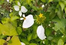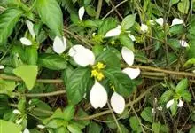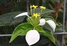 玉叶金花,为茜草科玉叶金花属攀援灌木;叶对生或轮生,卵状;萼片叶状雪白色,聚伞花序顶生,花冠黄色,花柱短而内藏。玉叶金花常野生于丘陵山坡、灌丛、林缘、沟谷、山野、路旁等地,其茎叶味甘、性凉,…全部>>
