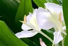 姜花又名野姜花。是姜科姜花属的多年生草本植物,茎高1-2米;叶片长圆状披针形或披针形,叶面光滑,叶背被短柔毛;穗状花序顶生,椭圆形,花芬芳,白色;蒴果卵状三棱形,微黄绿色;种子鲜红色,具橘红色的假种皮。…全部>>