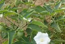 白花曼陀罗是白花曼陀罗属植物,一年生草本植物,全株近于无毛。茎直立,圆柱形,高30~100cm,基部木质化,上部呈义状分枝。叶互生,上部的叶近于对生;叶柄长2~6cm,…全部>>