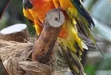太阳锥尾鹦鹉是典型的攀禽,鸟喙强劲有力,喙钩曲,上颌具有可活动关节,喙基部具有腊膜。肌肉质舌厚。脚短,强大,对趾型,两趾向前两趾向后,适合抓握和攀援生活。鹦鹉羽毛鸟体大部分为金黄色,头顶、脸颊两侧、…全部>>