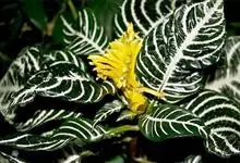 银脉爵床,又名斑马花、斑马爵床,爵床科单药花属植物。茎直立、方形、植株粗壮,略带肉质。叶对生,卵形或椭圆状卵形,叶子长约15cm~20cm,宽约10cm;叶端尖,叶片深绿色有光泽,…全部>>