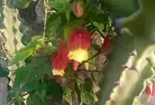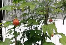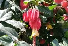 红萼苘麻是锦葵科、苘麻属常绿软木质灌木,叶绿色,长5-10厘米,心形,叶端尖,叶缘有钝锯齿,有时分裂,有细细的叶柄;叶互生,掌状叶脉;花单生于叶腋,具长梗,下垂;花萼红色,半套着大约4厘米长的花瓣,…全部>>