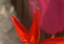 山丹是百合科百合属的多年生草本植物。鳞茎卵形或圆锥形,鳞片长圆形或长卵形,白色;叶散生茎中部,线形,边缘有乳头状突起;花单生或数朵成总状花序,花鲜红色,常无斑点,花被片反卷,…全部>>