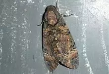 鬼脸天蛾,是鳞翅目天蛾科面形天蛾属动物。成虫翅展100~125毫米,体黑褐色;胸背有骷髅形斑纹;卵圆球形,直径约2毫米,淡黄绿色,表面光滑;老熟幼虫体长70~90毫米,蛹体长约56毫米;前翅为褐色,…全部>>