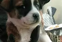 圣伯纳犬,别名巴里汉德,属于大型工作犬,肩高约65~90厘米,体重约50~90千克。圣伯纳犬身体强壮,被毛红褐色和白色相间,头圆而宽大。颈部强壮,胸宽深,背直。前肢长直,腕关节略前倾,后肢腿骨粗壮,…全部>>