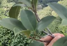 印度榕:乔木,高达20-30米,胸径25-40厘米;树皮灰白色,平滑。小枝粗壮。叶厚革质,长圆形至椭圆形,全缘,表面深绿色,光亮,背面浅绿色,侧脉多,不明显,平行展出;榕果成对生于已落叶枝的叶腋,卵…全部>>