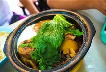 肉蟹煲,是一道由肉蟹、鸡爪、辣酱做成的美食。肉蟹,味道鲜、嫩,蟹肉味浓香。可与生姜搭配来降低寒气。加上年糕,蟹棒增加配料,色泽十足,…全部>>