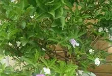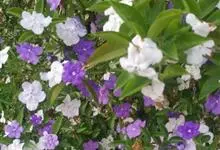 鸳鸯茉莉,茄科鸳鸯茉莉属常绿灌木植物,高1米。茎皮深褐色;分枝力强;单叶互生纸质;花簇生,聚伞花序,花冠五裂花瓣锯齿,含苞时蘑菇状深紫色,花香浓郁;花期4-10月。鸳鸯茉莉花朵芳香,…全部>>