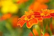 万寿菊是菊科万寿菊属一年生草本植物,别名孔雀菊、缎子花、臭菊花、西番菊、红黄草、小万寿菊、臭芙蓉、孔雀草。万寿菊茎近基部分枝。叶羽状分裂,长5-10厘米,宽4-8厘米,裂片长椭圆形或披针形,具锐齿,…全部>>