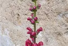 毛地黄是车前科、毛地黄属一年生或多年生草本植物。株高0.5—1米,茎直立,少分枝,全株被灰白色短柔毛和腺毛叶基生,呈莲座状,卵圆形或卵状披针形。顶生总状花序,花冠钟状,紫红色,内面有浅白斑点。菊果卵形。…全部>>