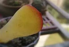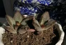 唐印为景天科伽蓝菜属的多年生肉质草本植物。植株中型,株高50厘米,宽20厘米,多分枝;叶片肉质,对生,卵形,全缘,先端钝圆,叶片淡绿色至灰绿色,表面被有厚厚的白粉,光照充足时,叶缘呈红色;圆锥花序,…全部>>