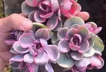 紫珍珠是景天科石莲花属的多年生肉质草本植物。植株中小型;叶片肉质,匙形,呈莲座状紧密排列;叶片粉紫色,叶缘呈粉白色,光照充足时颜色亮丽,不足时叶色会呈现深绿色或灰绿色,叶面光滑,被轻微白粉,…全部>>