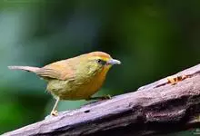 金头穗鹛小型鸟类,体长10~11厘米,是一种黄色小鸟。头顶金黄色有黑色纵纹,眼先黑色,在头、颊和耳羽金黄色的衬托下亦甚醒目。上体橄榄黄色,下体亮黄色,腹和两胁沾绿。…全部>>