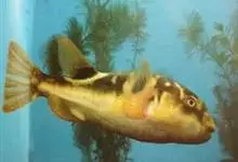 暗色东方鲀,为鲀科、东方鲀属鱼类。体呈筒形,体表密生小刺鳞,体内有气囊,遇敌时将体表小刺鼓起以自卫。洄游性鱼类,生活于水体中层。肉嫩、味鲜。河豚内脏生殖腺和血液有剧毒。鱼越大,毒性越强,生殖期更毒。…全部>>