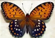 黑脉金斑蝶:翅阔8.6-12.4厘米。雄蝶较雌蝶为大。成年蝶颜色鲜艳,翅膀上有显眼的橙色及黑色斑纹,周围是宽阔的黑色边框,布有许多白色斑点。这种引人注目的着色是对捕食者的视觉警告,表示这个物种有毒;…全部>>