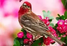 酒红朱雀小型鸟类,体长13~15厘米。雄鸟通体深红色,头部深朱红或棕红色,下背和腰玫瑰红色,眉纹粉红色而具丝绢光泽。两翅和尾黑褐或灰褐色、具暗红色狭缘,内侧两枚三级飞羽具淡粉红色先端。…全部>>