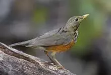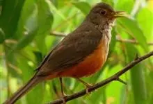 赤颈鸫是鸫科、鸫属中型鸟类,体长22-25厘米。上体灰褐色,有窄的栗色眉纹。颏、喉、上胸红褐色,腹至尾下覆羽白色,腋羽和翼下覆羽橙棕色。虹膜暗褐色,嘴黑褐色,下嘴基部黄色,脚黄褐色或暗褐色。…全部>>