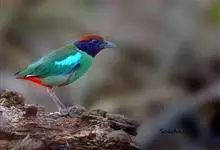 栗头八色鸫又叫锅巴雀,体长为24-26厘米,体重100-135克,是雀形目八色鸫科的鸟类。体型圆胖,尾短,腿长,常在森林底层或低植被中找食无脊椎动物。叫声简单哀婉。…全部>>