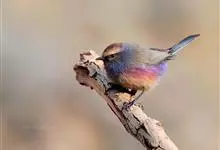 花彩雀莺:体长9-12厘米,是一种毛茸茸偏紫色的雀莺。顶冠棕色,眉纹白。尾长,羽毛松软。前额有一宽阔的眉纹淡黄色,头顶栗色或棕红色,有的具紫蓝色光泽。背灰色,腰和尾上覆羽辉紫蓝色,飞羽灰褐色。…全部>>