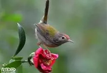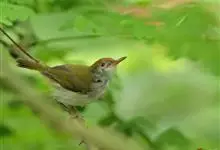 普通缝叶莺,是雀形目鹅科莺亚科缝叶莺属一种。体长10-14厘米,体重7-10克,雄鸟前额棕红,头顶至枕棕橄榄褐,上体橄榄绿染黄,飞羽及尾羽暗褐;繁殖期雄鸟的中央尾羽特形延长,下体淡皮黄白色。…全部>>
