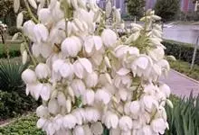 丝兰是天门冬科丝兰属植物。茎短或无茎;圆锥花序烛台状,花朵杯形,下垂,白色;叶基部呈剑形放射状,被白粉,革质;花期8—10月。丝兰原产于北美,在中国长江流域一带和华北地区均有栽培,长江以南地区也有分布。…全部>>